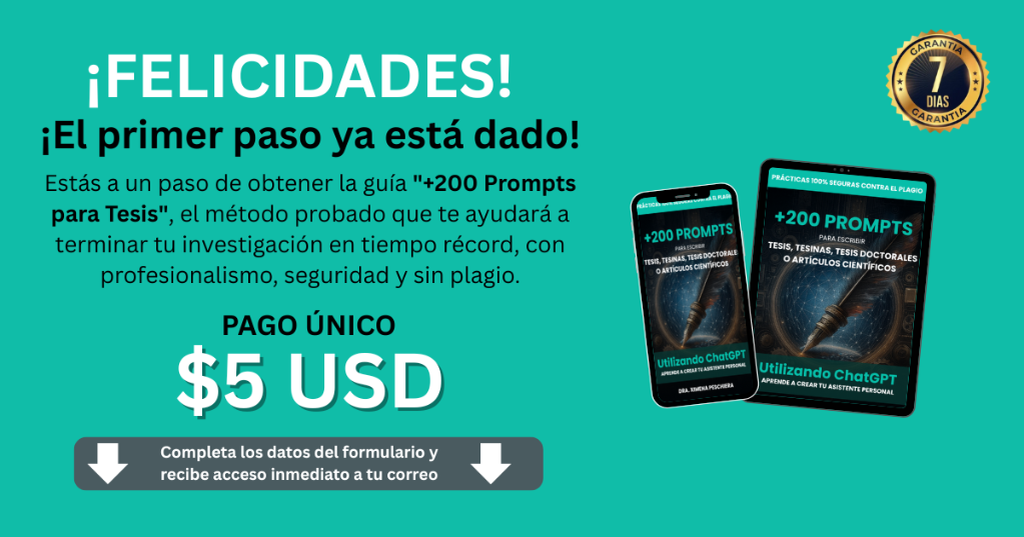 Domina el uso de ChatGPT para tu tesis sin cometer plagio y con total seguridad académica. Esta oferta exclusiva está disponible solo por hoy.