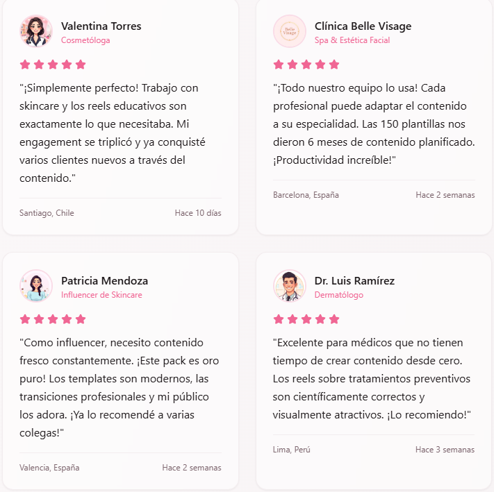 50 vídeos reels narrados, animados y editables para Dermatólogos + 100 Plantillas