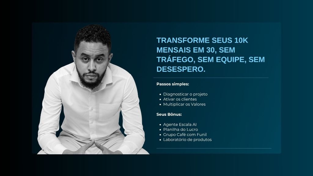 Você vai resolver seu problema de levar seus clientes para o próximo passo. Contudo, ainda sente que tem margem para melhorar seu tráfego direto? Posso te ajudar. Vamos passar 2hs analisando seu funil direto para que eu possa te apontar onde mexer para melhorar os números de forma imediata. Eu cobro R$ 597,00 para fazer isso, mas, se tornando meu aluno aqui nesta página pode levar por apenas R$ 47,00.