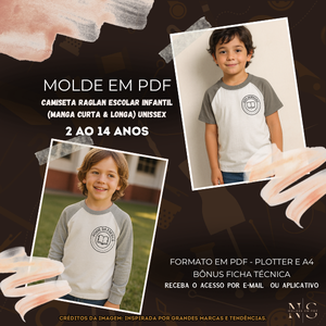 ✨NS Molde em PDF - Camiseta Raglan Escolar Infantil (Manga Curta & Longa) Unissex ID 6510458 [2 ao 14 anos]✨