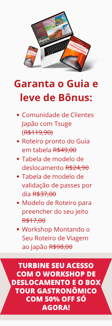 Baseado em um roteiro completo de 20 dias no Japão. Você vai ter toda ajuda que precisa para sua viagem ao Japão.