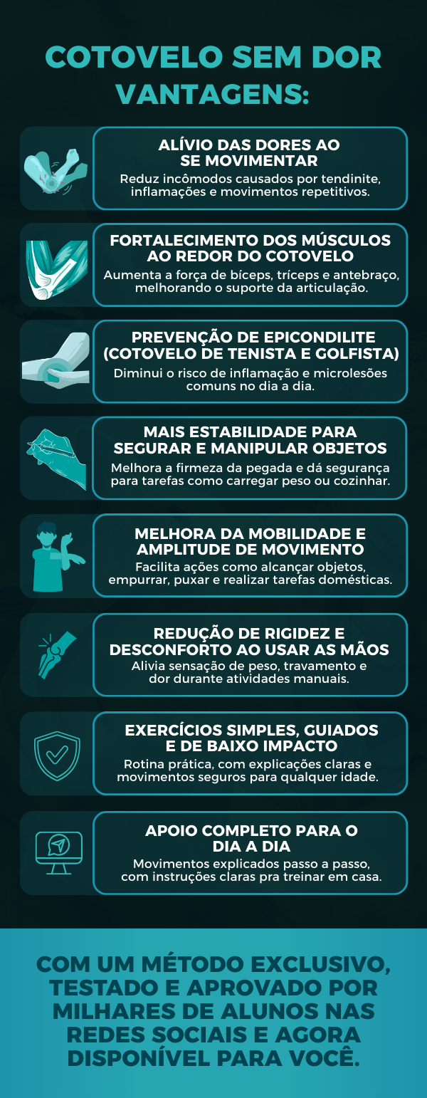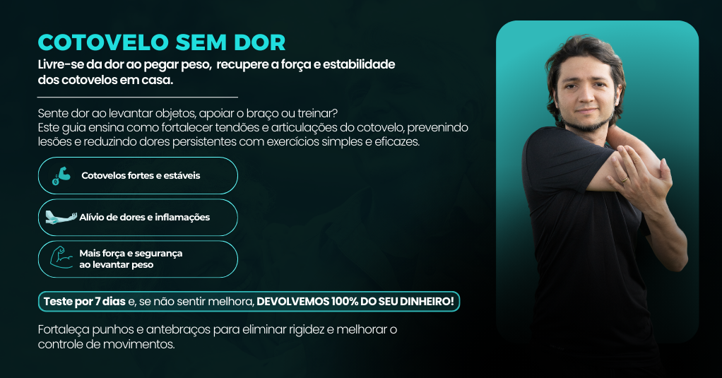 Ebook “Cotovelo Sem Dor” - Livre-se da dor ao pegar peso — recupere a força e estabilidade dos cotovelos em casa.
