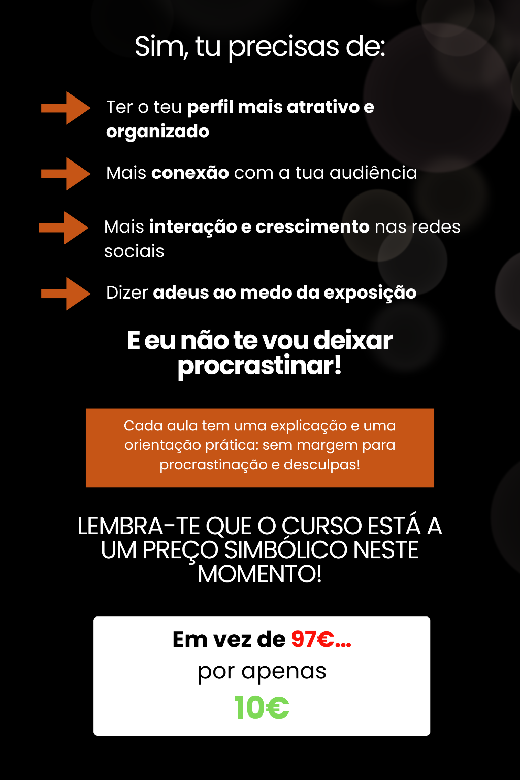 Curso onde vais aprender a dominar a ferramenta que está a dominar o mundo! 100% online e 100% gravado para assistires ao teu ritmo e onde quiseres às horas que preferires. Todos os módulos e aulas foram realizados para te ensinar a mexer no Instagram do zero, para que saibas tudo sobre esta ferramenta, para que depois possas tirar o maior partido dela para o teu negócio e/ou para o teu dia a dia.