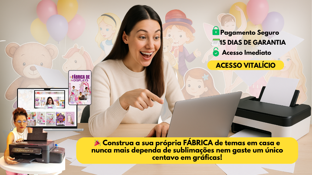 💸 Não se limite apenas às festas, seus displays valem muito mais: Descubra 13 formas de ganhar dinheiro com displays. Transformando sua impressora em uma máquina de fazer dinheiro sem sair de casa e utilizando apenas papel.