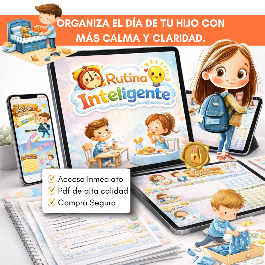 Rutina Inteligente – Niños Felices es un kit de rutinas visuales con materiales prácticos que ayudan a crear días más organizados, autónomos y tranquilos en familia.