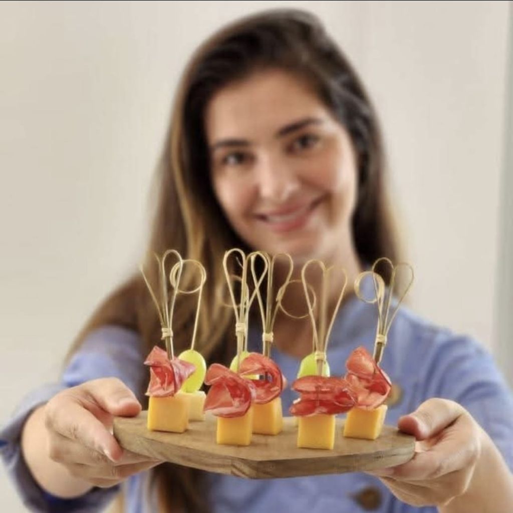 "“Eu achava que precisava de horas na cozinha, mas as receitas congeladas mudaram tudo. Ganhei tempo, economizei e ainda mando lanches variados e saudáveis. Me sinto mais tranquila e menos culpada.”"