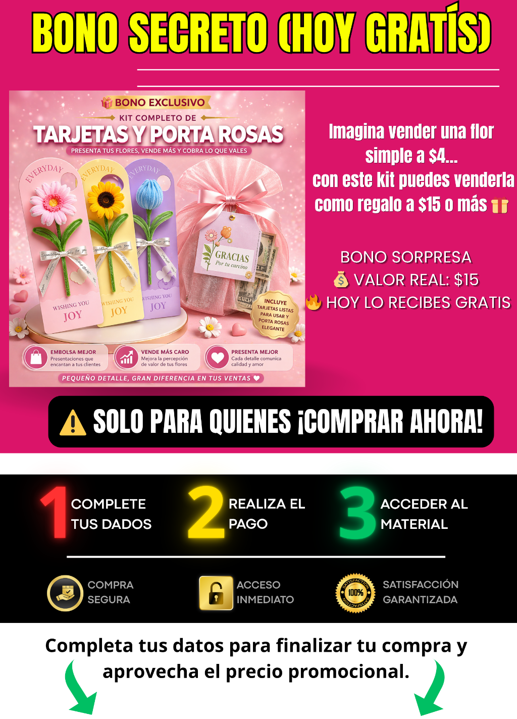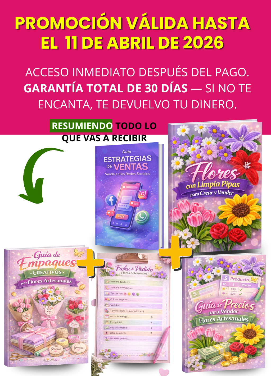 Accede a 30 diseños de flores que ya están generando ventas y aprende exactamente qué crear para empezar a vender desde el primer día. ✔ Ideas listas para copiar ✔ Diseños que llaman la atención ✔ Combinaciones que venden ✔ Sugerencias de precio 💰 Deja de adivinar y empieza a vender lo que ya funciona. 👉 Copia lo que ya se vende… y gana dinero más rápido