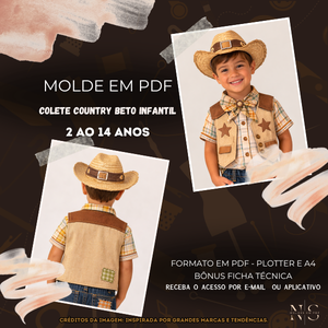 ✨NS Molde em PDF - Colete Country Beto Infantil ID 7562379 [2 ao 14 anos]✨