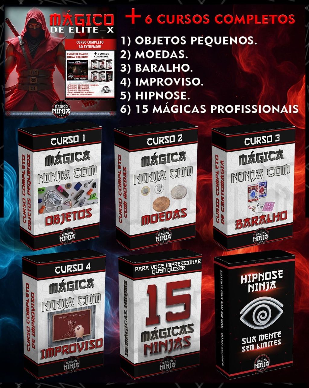 Você vai aprender a manipular, sumir, aparecer e transformar qualquer objeto pequeno! Vai aprender todas as técnicas do básico ao avançado para se fazer mágicas com moedas e baralho! Combine as técnicas para fazer qualquer mágica, em qualquer ocasião. Aprenda todos os conceitos da mágica para criar o efeito de seu gosto. Desenvolva técnicas de abordagem e interação para fazer mágicas sempre que quiser!