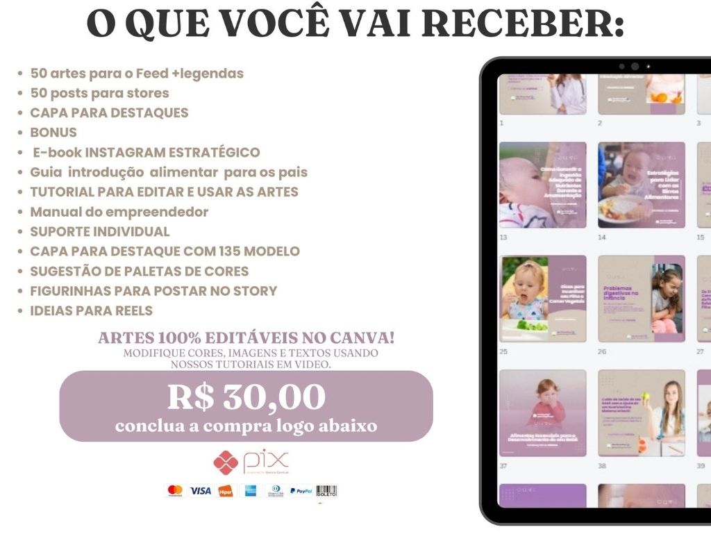 Transforme a Introdução Alimentar do seu Bebê com Nossos Packs Exclusivos! 🍽️ Está na hora de dar os primeiros passos na alimentação do seu bebê e você não precisa fazer isso sozinha! Eu criei packs de introdução alimentar prontos para facilitar o seu dia a dia. Eles são repletos de dicas práticas e receitas nutritivas que vão tornar essa fase muito mais tranquila e saudável. 💡 Benefícios: ✅ Refeições balanceadas e adaptadas para cada fase ✅ Dicas sobre como evitar alimentos alergênicos ✅