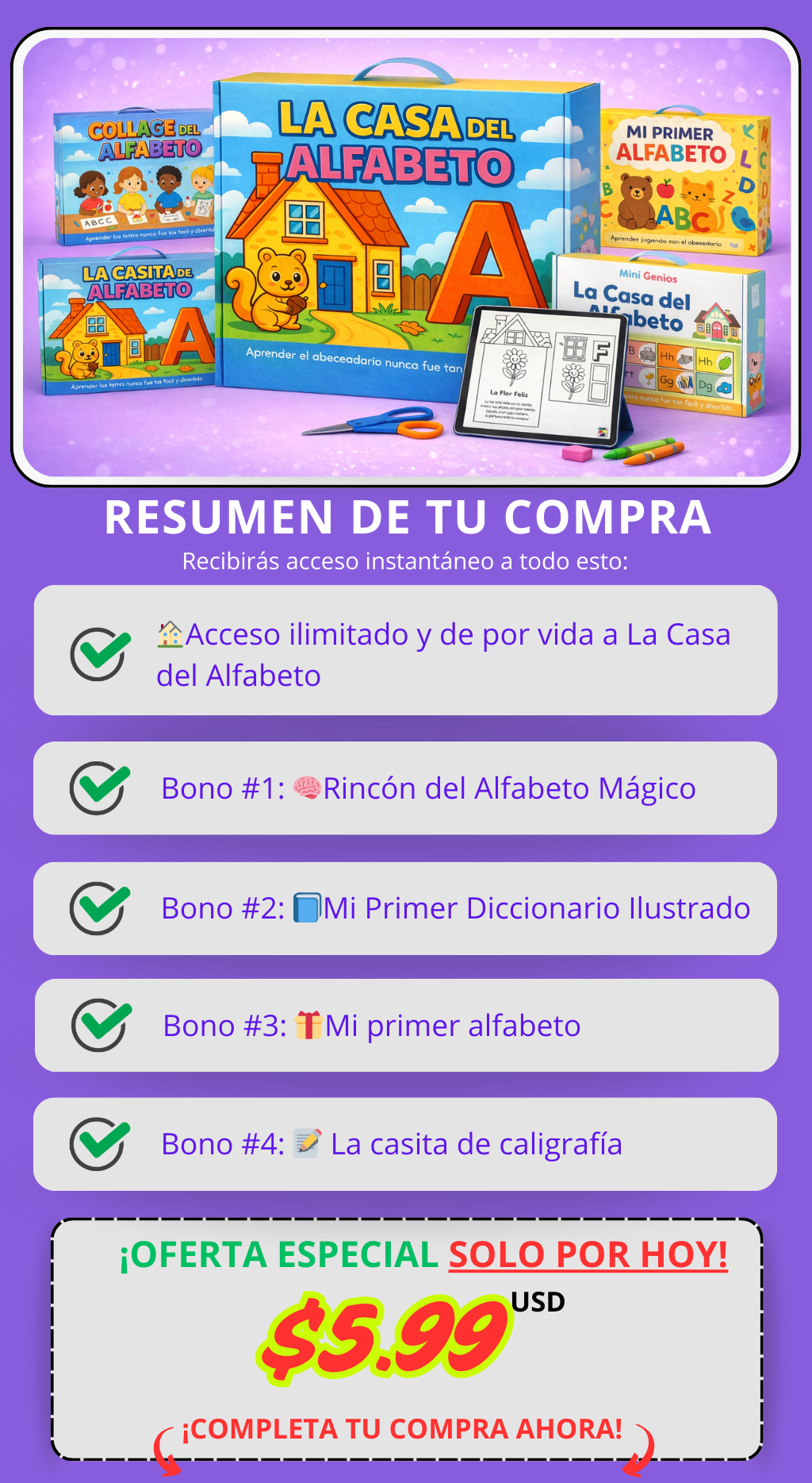 ¡Refuerza el aprendizaje con juego y diversión! Agrega la Lotería del Alfabeto por solo unos pesos más y ayúdale a tu peque a reconocer las letras con ilustraciones, memoria y emoción. Ideal para jugar en familia o en clase. ¡Un complemento perfecto para acelerar su proceso de lectura!