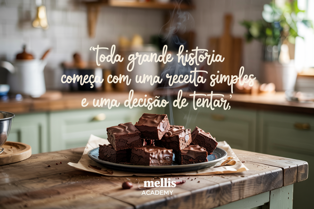 "Comecei pra fazer um extra na faculdade e hoje a confeitaria virou minha principal renda. Só com o brownie red velvet eu já fechei 3 encomendas de caixa presente. Obrigada, Mellis!"