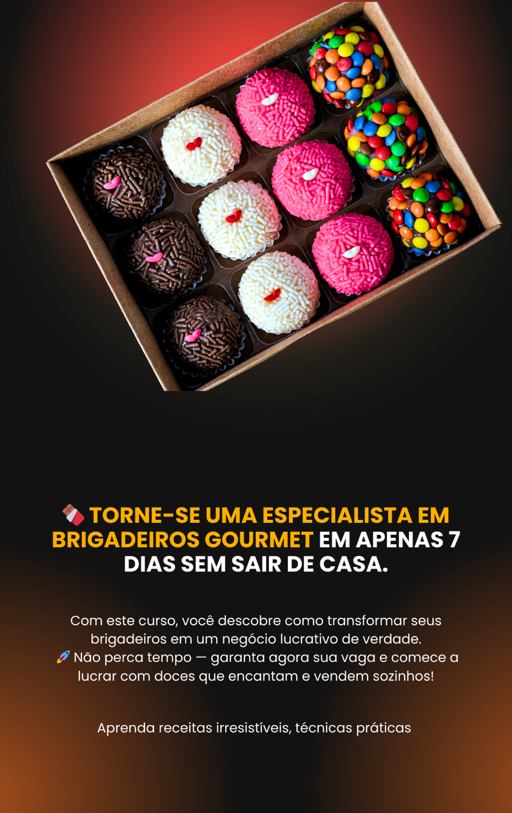 Como Fazer R$ 5 Mil Por Mês Vendendo Brigadeiros Gourmet é o guia completo que ensina, passo a passo, como transformar um simples doce em uma fonte real de renda mensal. Mesmo que você esteja começando do zero, este eBook vai te mostrar como planejar sua produção, atrair clientes e lucrar alto com brigadeiros artesanais de qualidade. 📈 O que você vai aprender: Como calcular sua meta e montar um plano realista para faturar R$ 5.000/mês 🛠️ Não é só teoria, baseado em resultados reais.