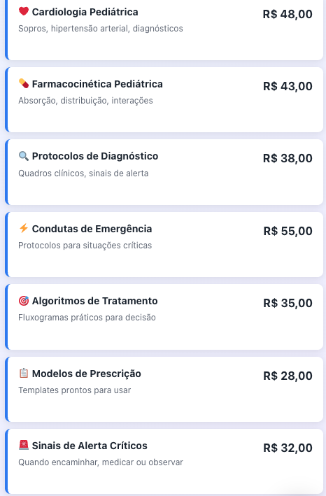 Você já aprendeu o "o quê" e "como" prescrever… Agora é hora de ver como isso aparece na prática clínica real. Este eBook traz casos clínicos diretos ao ponto, cobrindo os principais cenários enfrentados no pronto-atendimento e ambulatório pediátrico — com raciocínio diagnóstico, conduta e prescrição resolutiva explicada passo a passo.