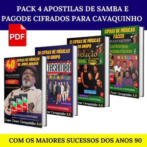PACK 4 APOSTILAS COM CIFRAS DE SAMBA E PAGODE PARA CAVAQUINHO