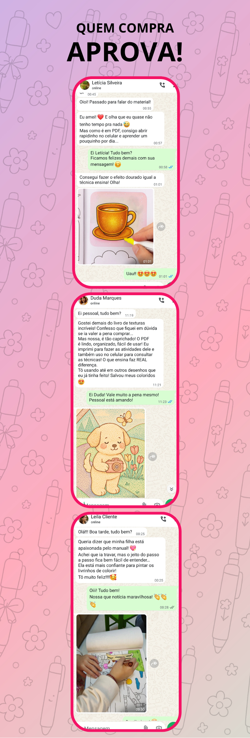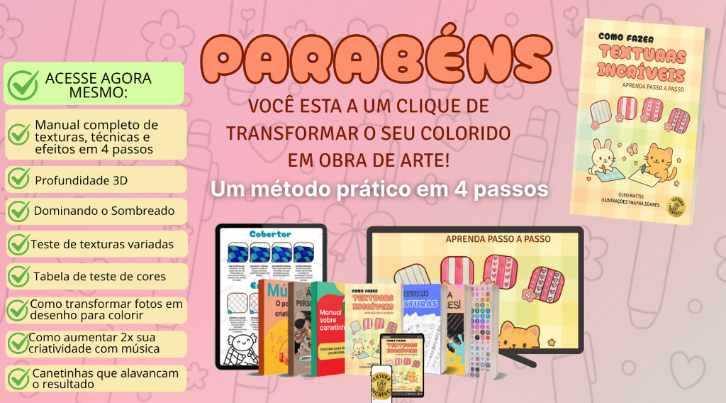 Saiba exatamente quais cores usar para deixar seu colorido totalmente harmônico e charmoso. Você terá acesso a DIVERSAS combinações de cores JÁ PRONTAS, incluindo as mais populares e harmônicas do momento, para você copiar e aplicar - com as explicações/intenção de cada uma . Também irá aprender como escolher suas próprias cores de uma maneira bem prática