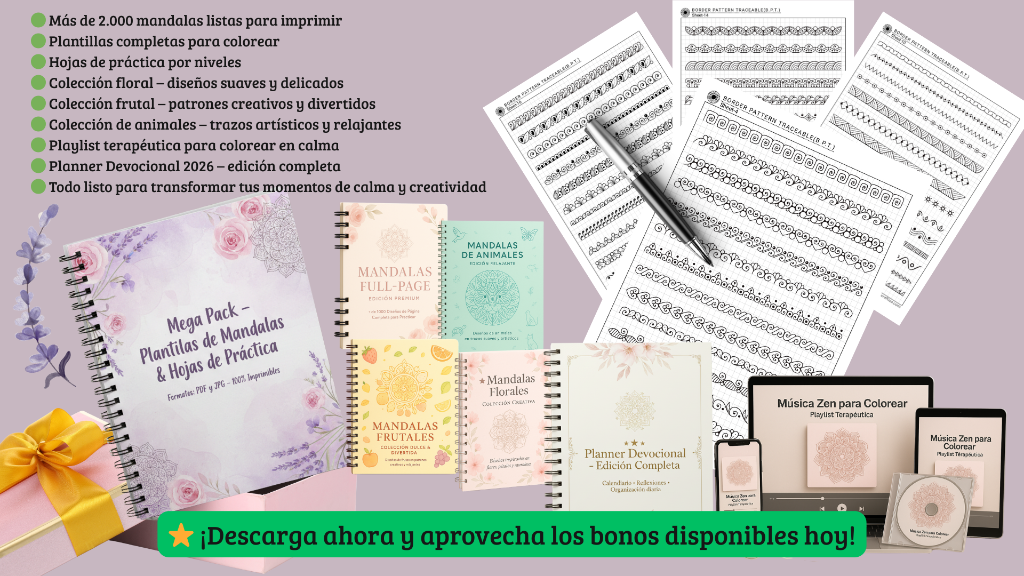 Mandalas Terapéuticas – Mega Pack Creativo Plantillas de Mandalas y Hojas de Práctica (PDF/JPG) – 100% Imprimibles