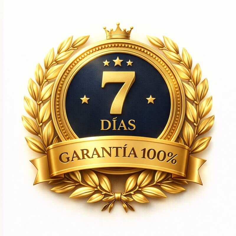 Si por alguna razón no estás completamente satisfecho con tu compra, te ofrecemos una garantía total de 7 días. Si no ves los resultados prometidos o no te convence, te devolvemos tu dinero, sin preguntas ni complicaciones. Compra con total tranquilidad y empieza tu transformación hoy mismo.