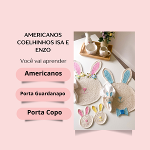 Aula Americanos Coelhinhos Isa e Enzo com Porta Guardanapo e Porta Copo