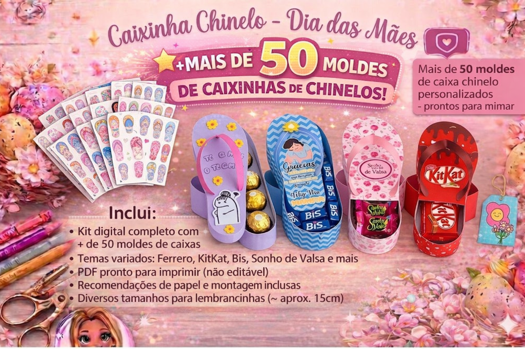 +50 Moldes Caixinha Chinelo - Dia das Mães