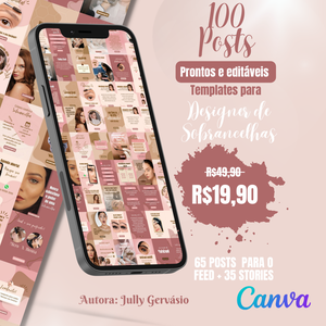 Pack Canva Designer de Sobrancelhas 100 Templates Editáveis
