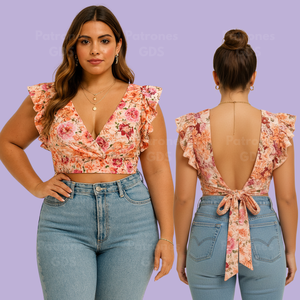 Blusa con escote cruzado y lazo en la espalda -2175