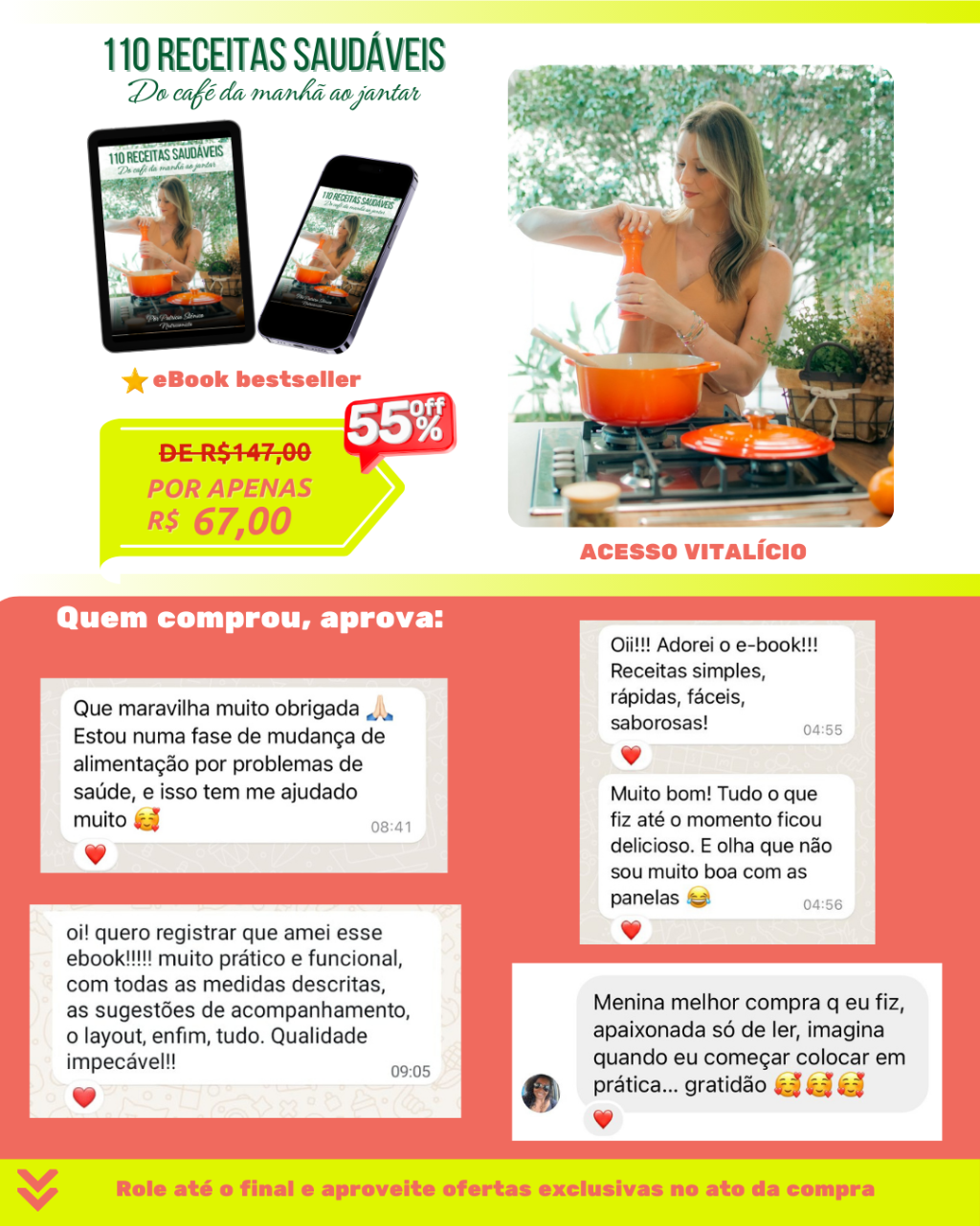 SOMENTE AQUI NESTA PÁGINA. Garanta seu Ebook Refeições Saudáveis para Congelar com um DESCONTO ESPECIAL de R$147,00 por R$57,00! São mais de 70 receitas deliciosas para congelar e garantir refeições saudáveis! Acesso vitalício *Ao sair desta página você perderá essa oportunidade de desconto.