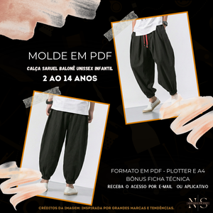 🧵[Molde em PDF] - Calça Saruel Balonê Unissex Infantil ID 4537500 [2 ao 14 anos]✨
