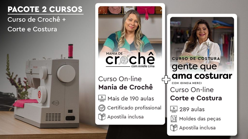 Pacote 2 Cursos - Mania de Crochê & Gente que Ama Costurar