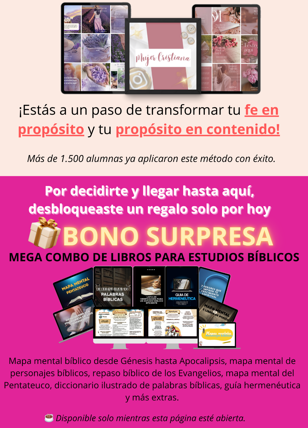 Llévate los 3 cursos de arriba en un solo pack especial. Son tres de mis programas más queridos y vendidos, reunidos con un 41% de descuento exclusivo. ⚡ Esta oportunidad aparece solo en esta página y solo por hoy — después el valor vuelve al normal. No encontrarás este pack en ningún otro lugar. ✔ Stickers Cristianos ✔ Banco de imágenes cristianas ✔ Libro electrónico cristiano: ECOE 👉 Agrega ahora mismo los 3 en 1 a tu compra y obtén el menor precio jamás ofrecido.