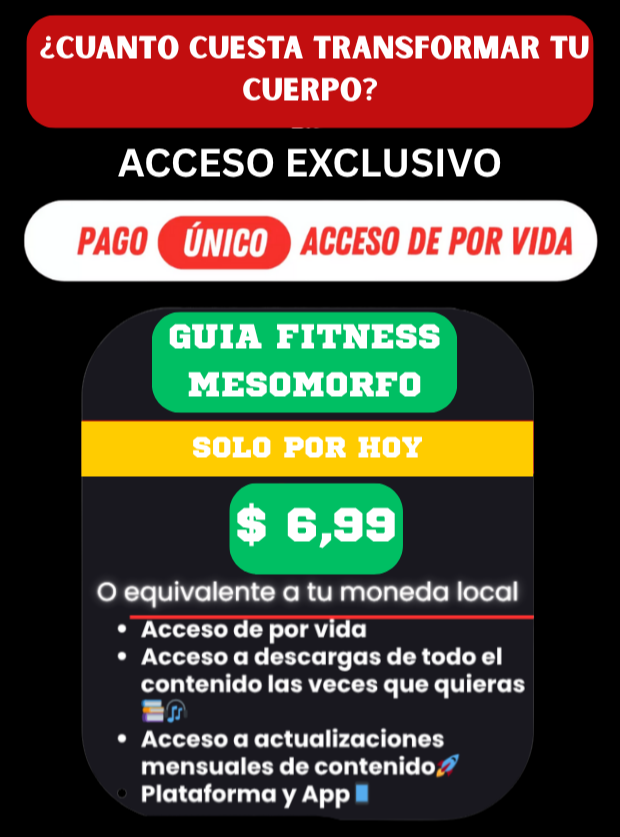 Esta guía está diseñada exclusivamente para tu tipo corporal, con estrategias específicas para potenciar tu físico, aumentar músculo limpio y mantenerte definido.