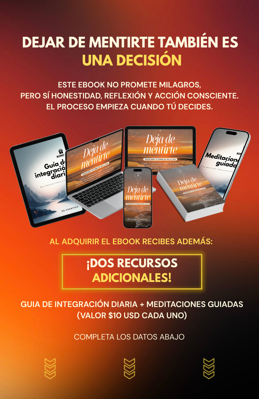 Las Vitaminas Mentales son 10 videos breves para sostener tu proceso cuando la mente vuelve al miedo, al cansancio o a la duda. Cada vitamina acompaña un estado emocional distinto y te ayuda a volver a tu centro en pocos minutos. No dejes pasar la oportunidad de llevarte tus Vitaminas Mentales: un apoyo real para esos momentos en los que te sientes perdida y la mente vuelve a lo de siempre. Hoy puedes sumarlas a tu compra con este descuento especial.