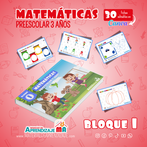 Cuadernillo de matemáticas Preescolar 3 años. Bloque 1 (EDITABLE)