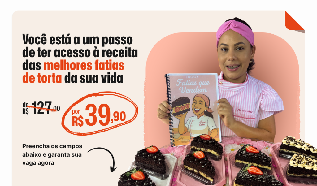 Adicione agora o Ebook Copos da Felicidade PRO e aprenda minha receita autoral que rende 5x que as receitas tradicionais! Com mais de 70 páginas, além das receitas, descubra técnicas de montagem, combinação de sabores, apresentação, armazenamento, estratégias de venda e muito mais. Essa oportunidade exclusiva com o valor promocional é mostrada somente nesta página, para quem está comprando o Ebook Fatias Que Vendem.