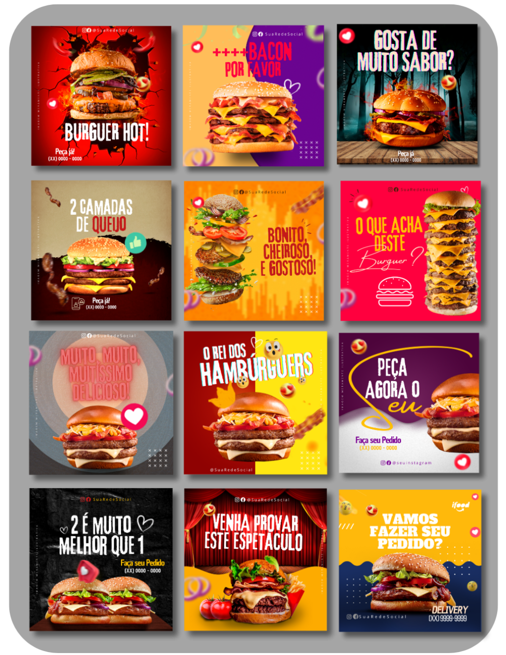 +500 Templates de Posts Prontos para Hamburgueria