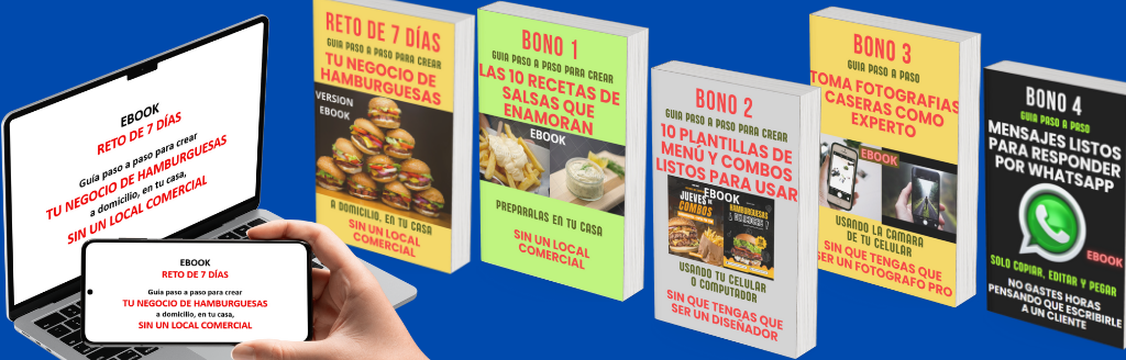 RETO 7 DIAS - GUIA PASO A PASO PARA CREAR TU NEGOCIO DE HAMBURGUESAS, A DOMICILIO, EN TU CASA, SIN UN LOCAL COMERCIAL.