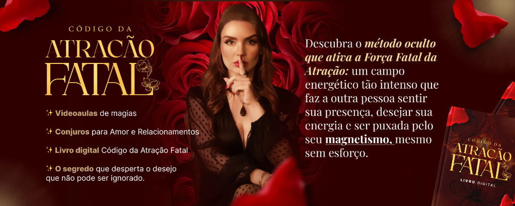 O Código da Atração Fatal foi criado exatamente para isso: ativar a energia que faz você ser percebida, desejada e procurada sem esforço e sem correr atrás.