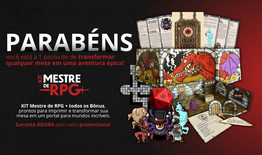 🔥 DESBLOQUEIE UMA AVENTURA DE CARNAVAL! 🎭 Kit Mestre de RPG Edição Carnaval: leve a folia para sua mesa com uma aventura temática, cenários exclusivos e desafios divertidos para comemorar o Carnaval. ✅Garantir essa oferta ÚNICA por apenas