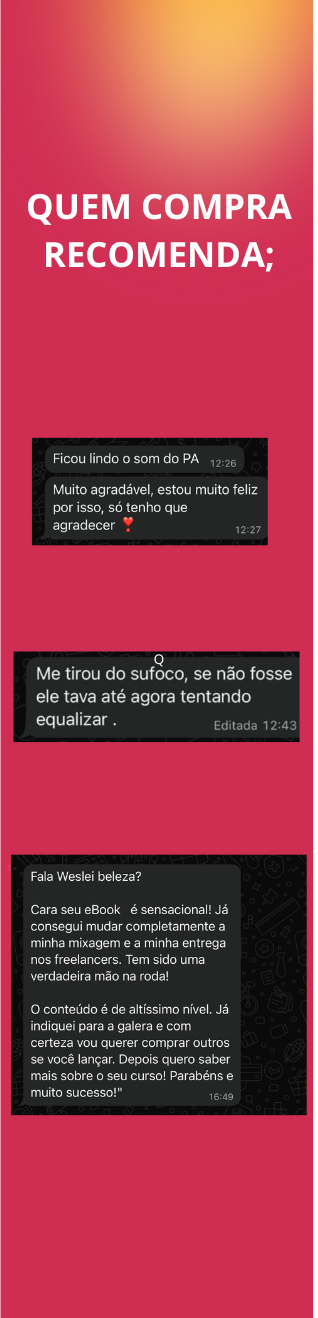 Guia Prático de Efeitos é uma super aula direta ao ponto, onde você terá acesso a presets prontos de efeitos, com um passo a passo simples e objetivo — é só copiar os ajustes e usar. Em 1 hora, você já estará com seus efeitos configurados e prontos para uso na mixagem.