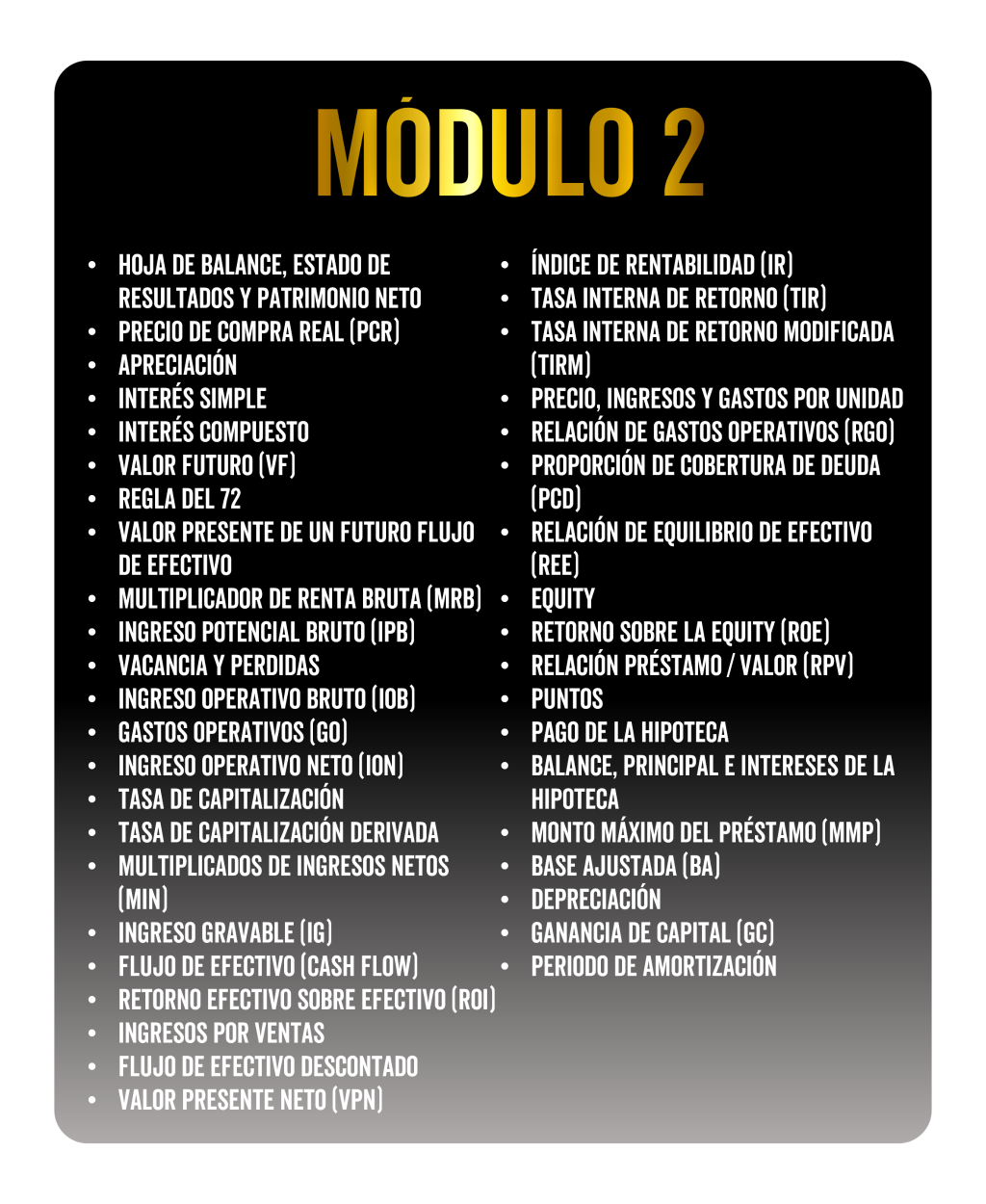 El Real Estate Analyzer es un programa financiero automático diseñado por el equipo de Sociedadecaballeros & Comojugarmonopolio con el cual podrás analizar y entender mucho mejor los casos de estudio y tus propiedades. Este programa es exclusivo para los suscriptores del curso y se enseñara a manejar en su totalidad a lo largo del curso.