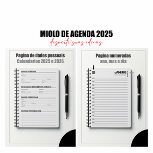 Miolo digital de agenda 2025 para imprimir