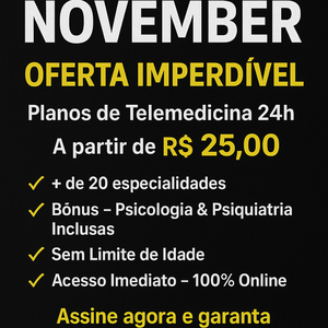 Telemedicina 24h, 1 vida, +20 especialidades, Psicologia e Psiquiatria, Sem Clube de Vantagens , Sem Biblioteca de Cursos