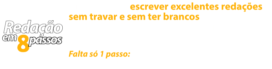 Aprenda o passo a passo para escrever redações completas e nota alta em apenas 40 minutos! Use o Esqueleto Inteligente Coringa e a Sequência da Escrita Perfeita para escrever rápido, bem e com segurança Marque o quadradinho ao lado da seta para levar junto.