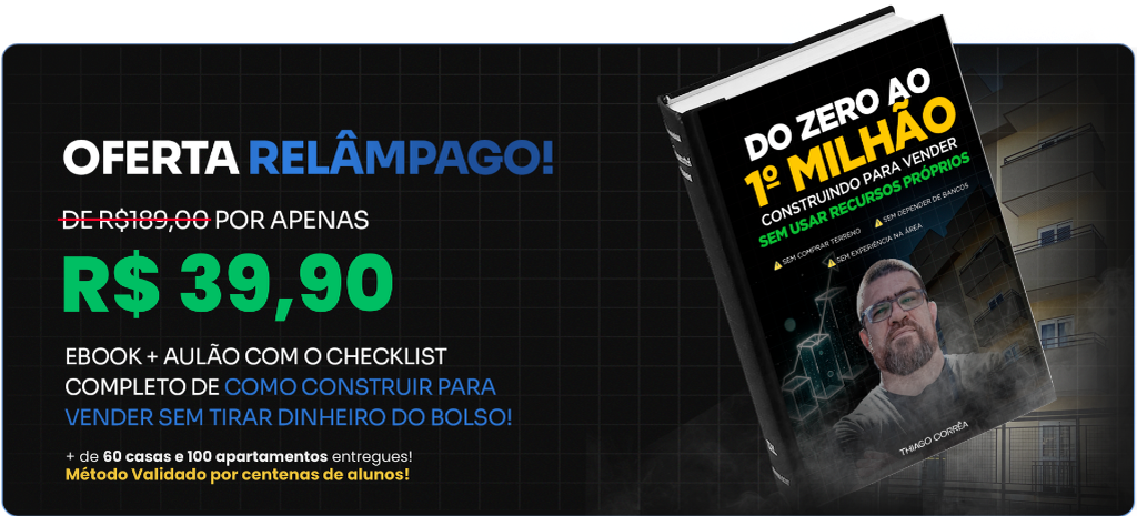 Livro digital + aulões de como economizar muito na sua obra e aumentar drasticamente sua MARGEM DE LUCRO! Vou mostrar em detalhes como pago 1500 reais por m² nas minhas obras em pleno 2025!