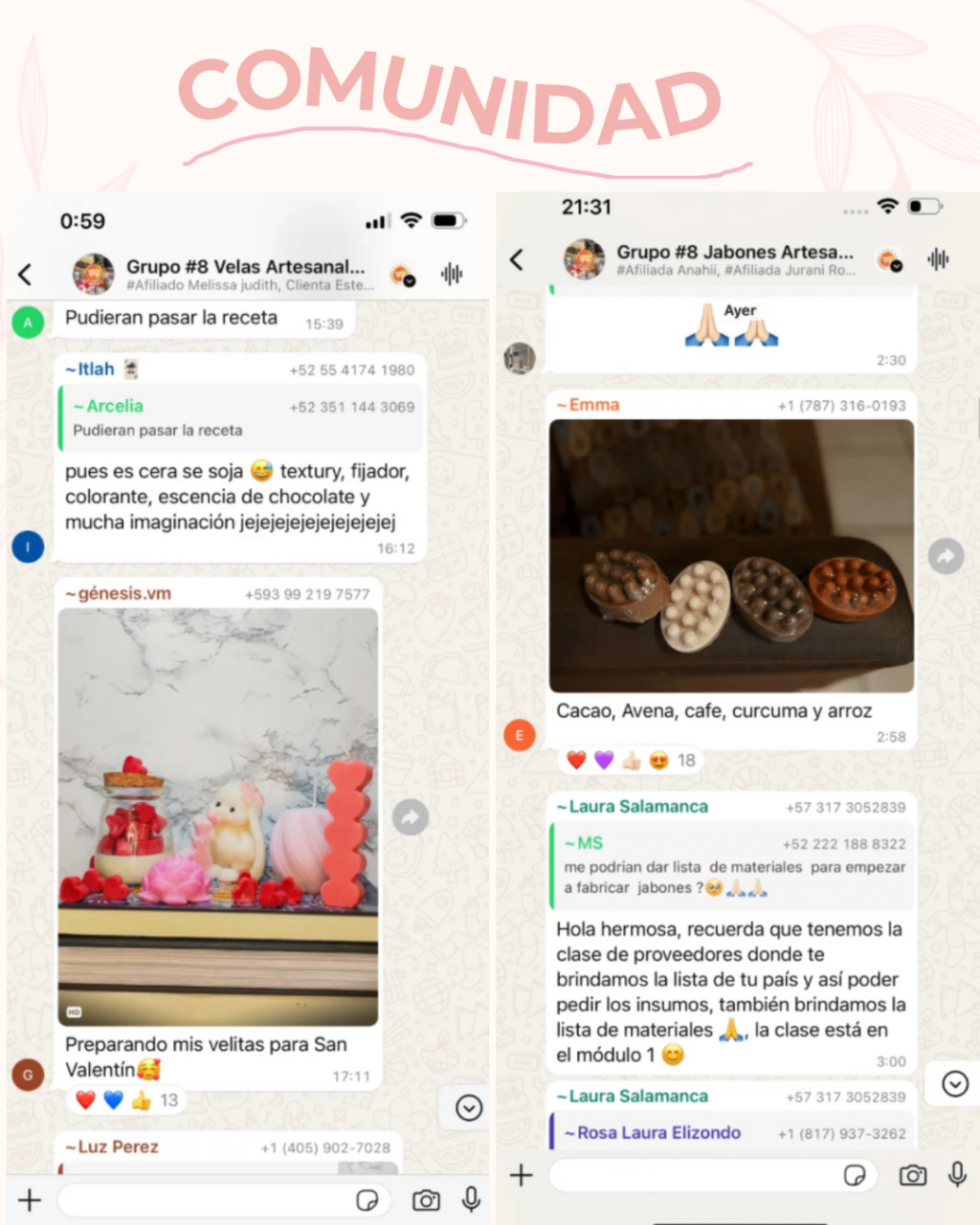 🌿 Únete al Grupo VIP en WhatsApp y telegram Accede a una comunidad privada donde podrás: 💬 Resolver dudas en grupo 👩🏫 Recibir tips exclusivos de un experto 🤝 Aprender junto a otros emprendedores artesanales 🎁 ¡Solo para compradores! Aprovecha esta oportunidad única 🔒
