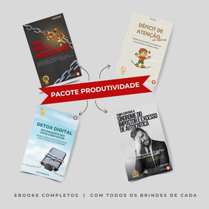 Ideal para quem quer melhorar o desempenho no trabalho, nos estudos e na vida pessoal, o Combo Produtividade é um guia completo para equilibrar mente e rotina — sem culpa, sem pressão e com resultados reais.