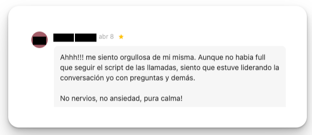 Trato directo conmigo, sin intermediarios: No delego la consultoría a asistentes o "coaches de soporte". Entiendo la complejidad de tu servicio, por eso estaré yo misma respondiendo tus dudas y revisando tus avances.