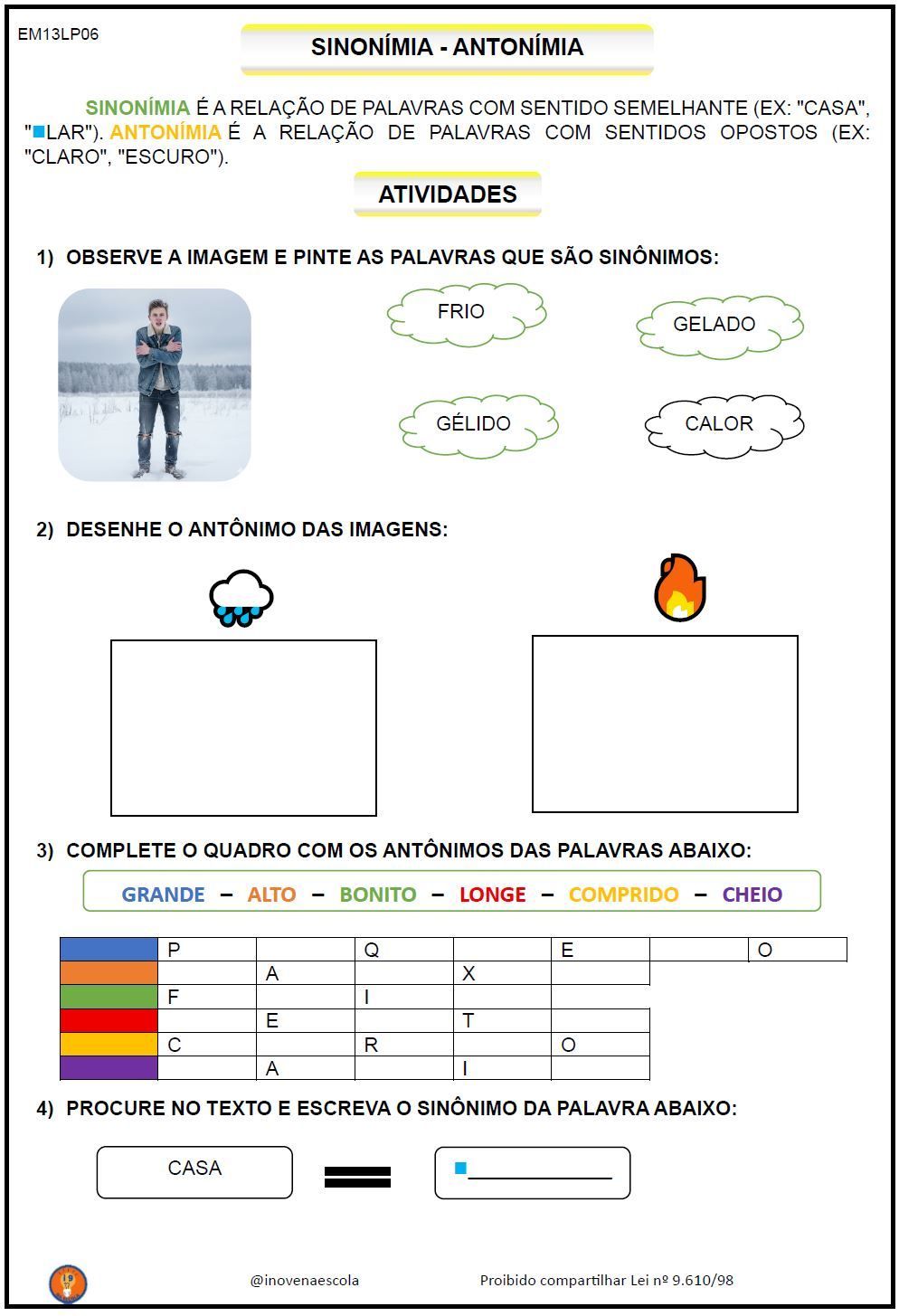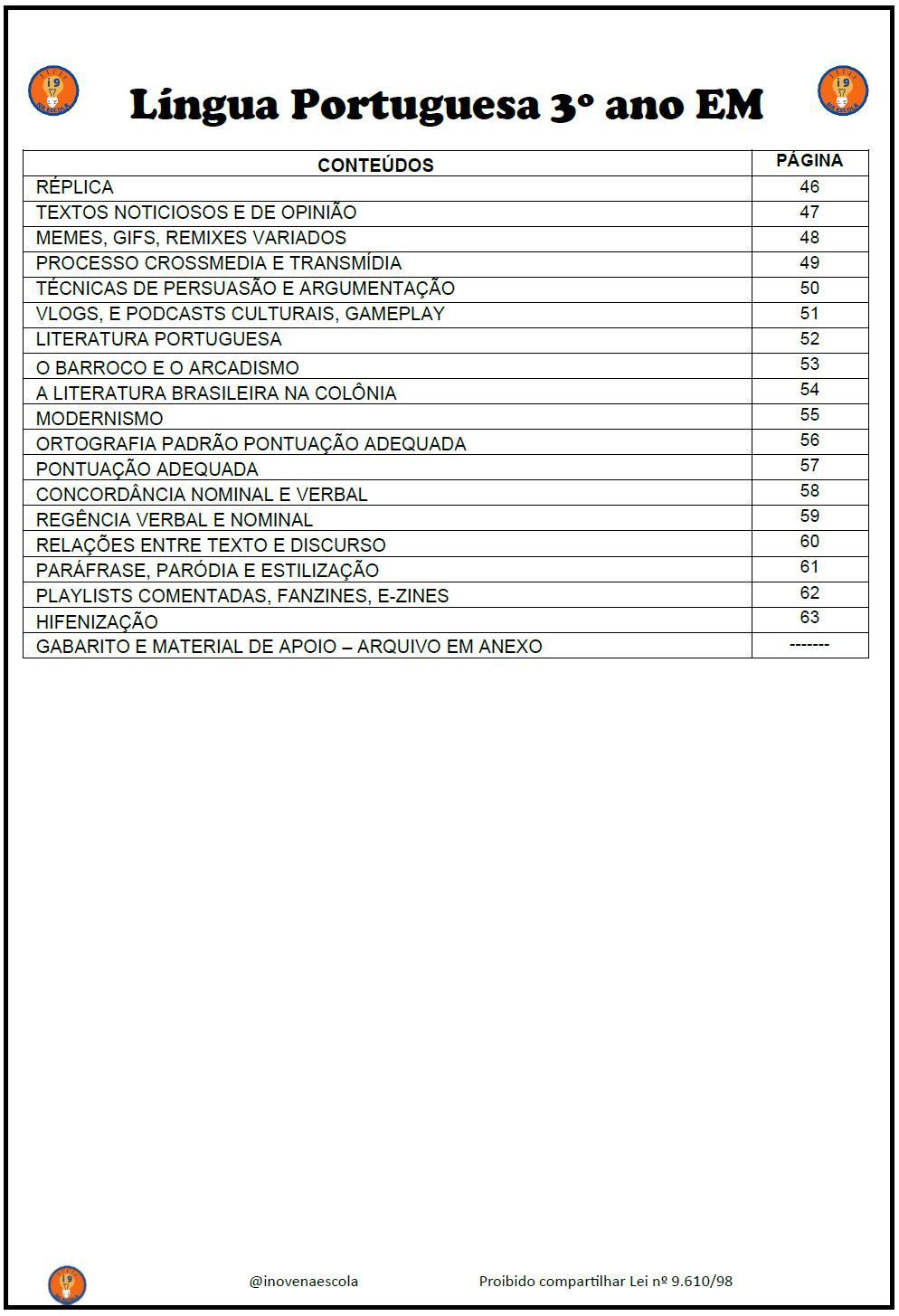 Kit Língua Portuguesa 1º, 2º e 3º EM Atividades Adaptadas