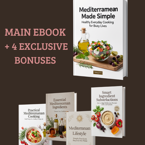Instant access to the Practical Mediterranean Cooking eBook + 4 exclusive bonuses. Digital download. 7-day money-back guarantee.
