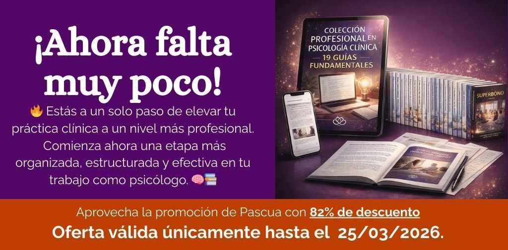 🧠 Un recurso práctico para aplicar en consulta. Añade herramientas clínicas profesionales antes de finalizar tu compra. Accede ahora al Manual de Técnicas Terapéuticas Utilizadas en Psicología Clínica, una guía práctica con estrategias organizadas para manejo de ansiedad, regulación emocional, intervenciones cognitivas y mindfulness. Un material claro y profesional que puedes consultar en smartphone, tablet, computadora o imprimir para usar en consulta. ⏳ Disponible únicamente en esta página